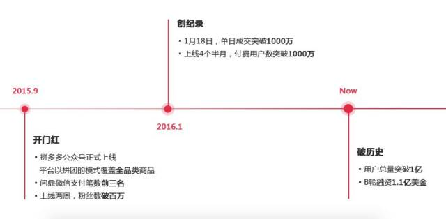 成立仅一年时间,拼多多便做到了10亿的月GMV。2016年7月,拼多多完成了1.1亿美元的B轮融资,投资方包括高榕资本、新天域资本、腾讯等。